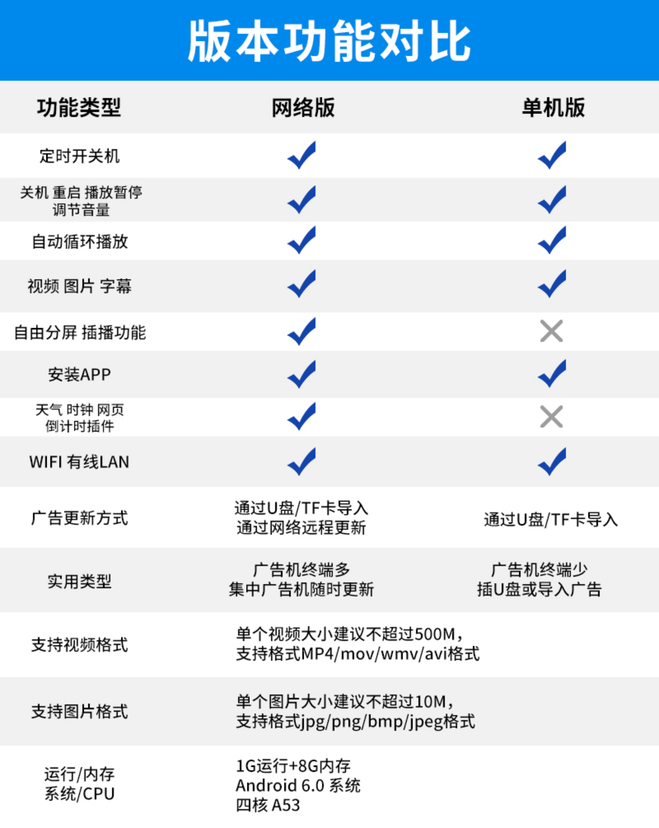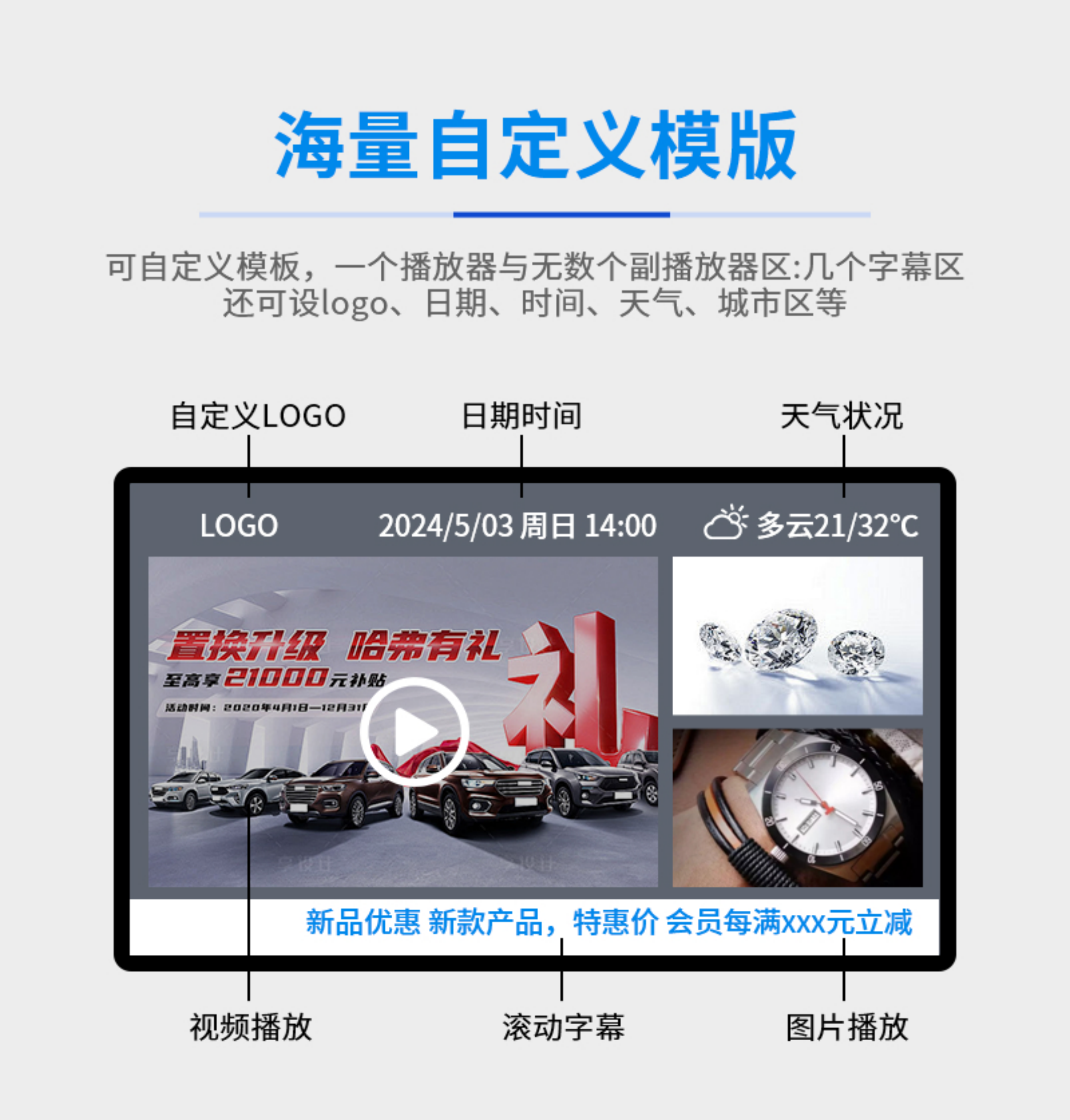 | 4、广告功能,支持播放高清的广告图片、视频、音频 | ||||