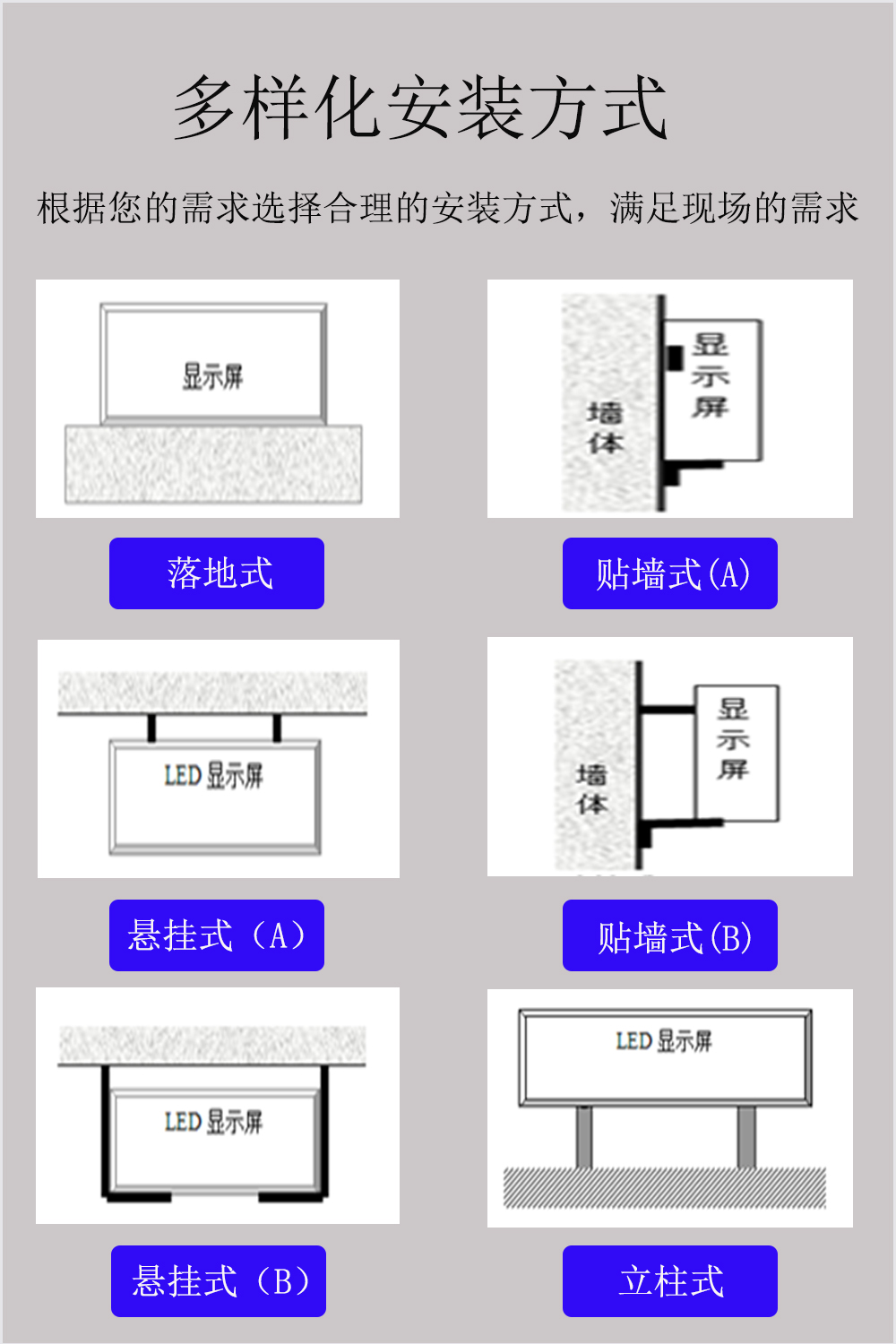 7.结构:LED显示屏显示部分结构可采用钢、铝、镀锌方管、塑料等材料结构安全坚固;